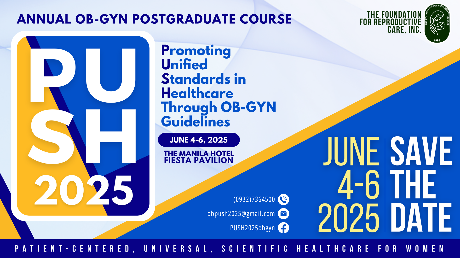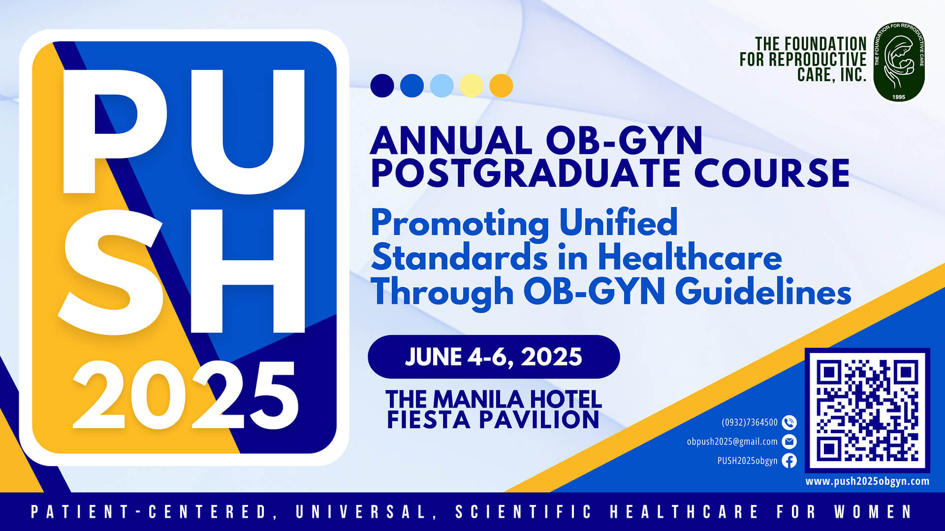 The Department of Obstetrics and Gynecology of the Philippine General Hospital is delighted to invite you to its annual postgraduate course, PUSH 2025 or Patient-centered Universal Scientific Healthcare for Women. This is the 7th year since we have taken on the brand PUSH for our postgraduate course which reflects our unwavering commitment to advancing evidence-based, patient-centered care in the field of obstetrics and gynecology. This will be held at the Fiesta Pavilion of The Manila Hotel on June 4 to 6, 2025.